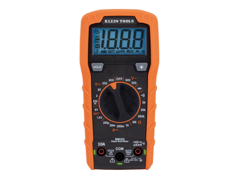 - Klein Tools Manual-Ranging Digital Multimeter, with two AAA batteries